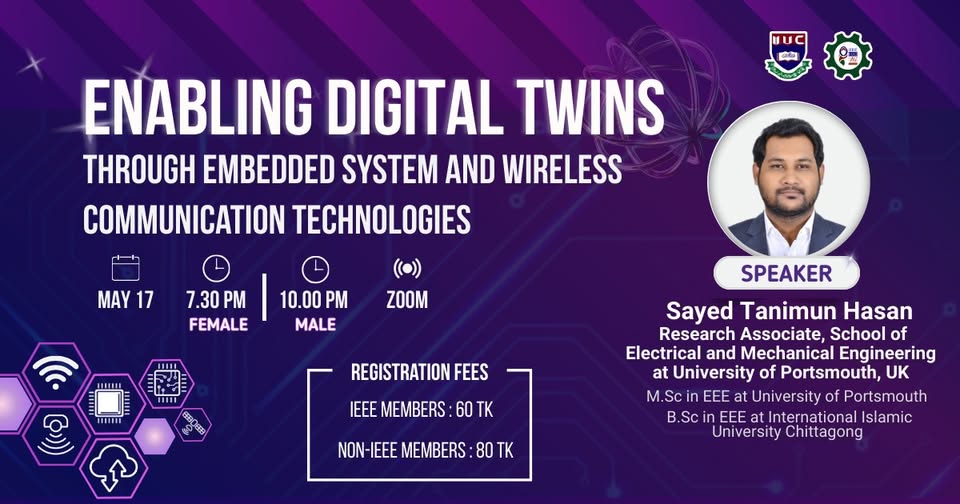 I recently conducted two separate sessions for male and female participants, organized by the IEEE IIUC Student Branch WIE Affinity Group. The sessions focused on real-world applications in the field of Embedded Systems and Wireless Communication Technologies. The sessions were designed to provide practical insights and inspire students to explore cutting-edge innovations in embedded and wireless technologies.